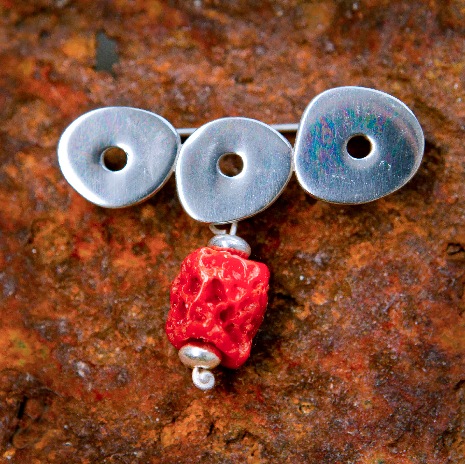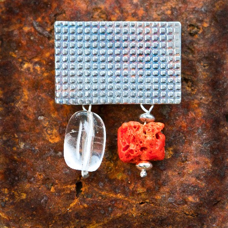 SERIE MÉRIDA. Broche. Coral y Cuarzo Cristal